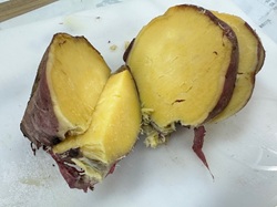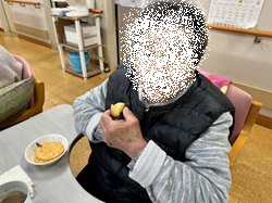 今日も焼き芋作りました。おやつのお煎餅に加えさせていただきました。